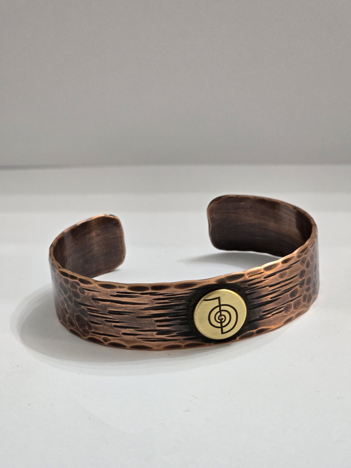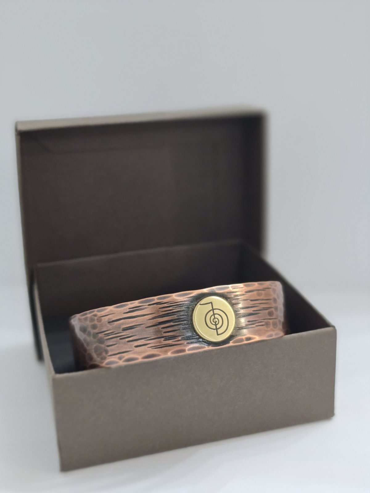 Vsaka zapestnica je skrbno ročno oblikovana iz čistega bakra – kovine, ki od nekdaj simbolizira pretok življenjske energije. V njenem središču zasije Cho Ku Rei, simbol moči v reikiju. Ta čarobni znak povečuje pretok energije, ščiti pred negativnimi vplivi in krepi notranjo vitalnost.