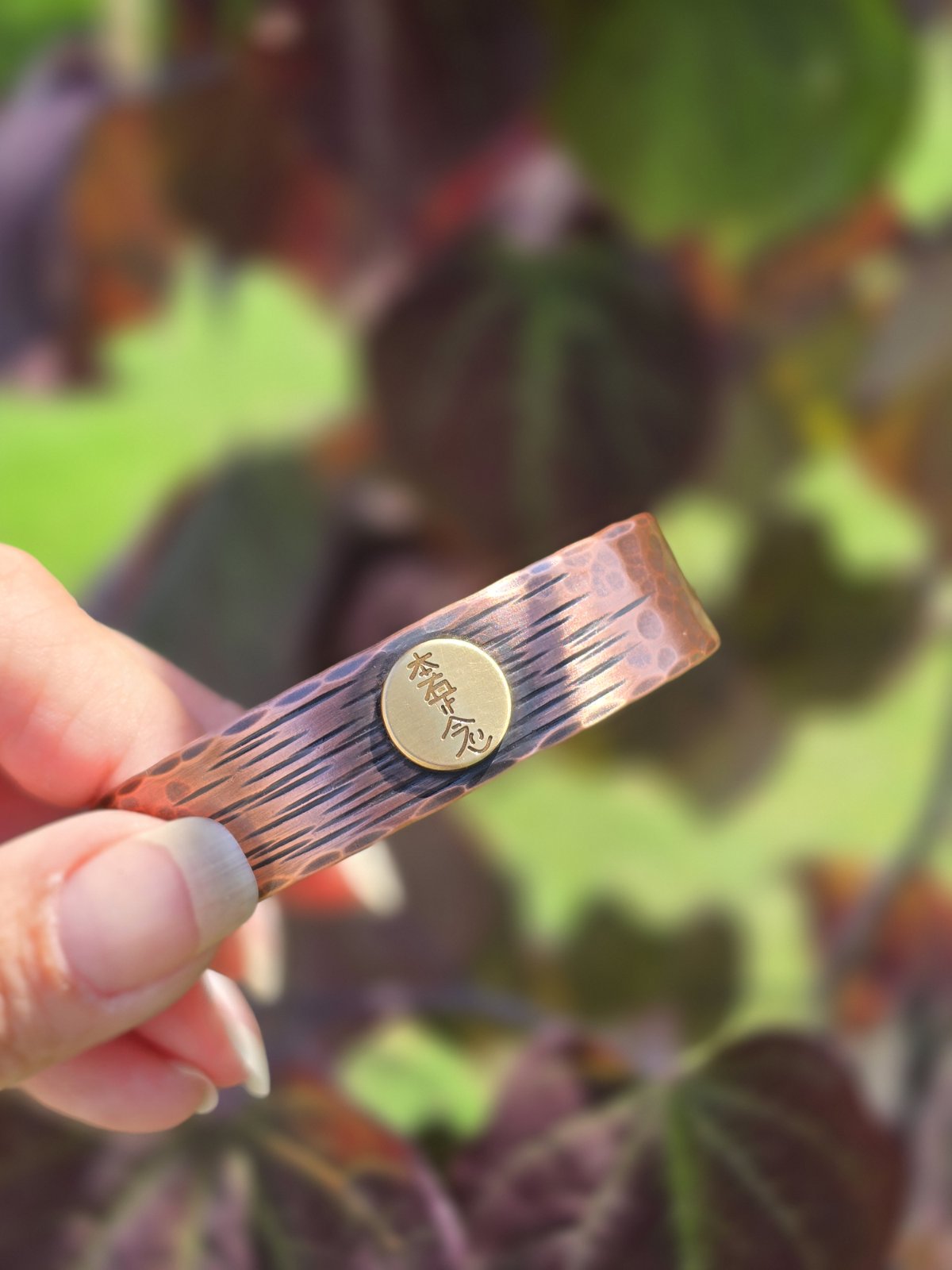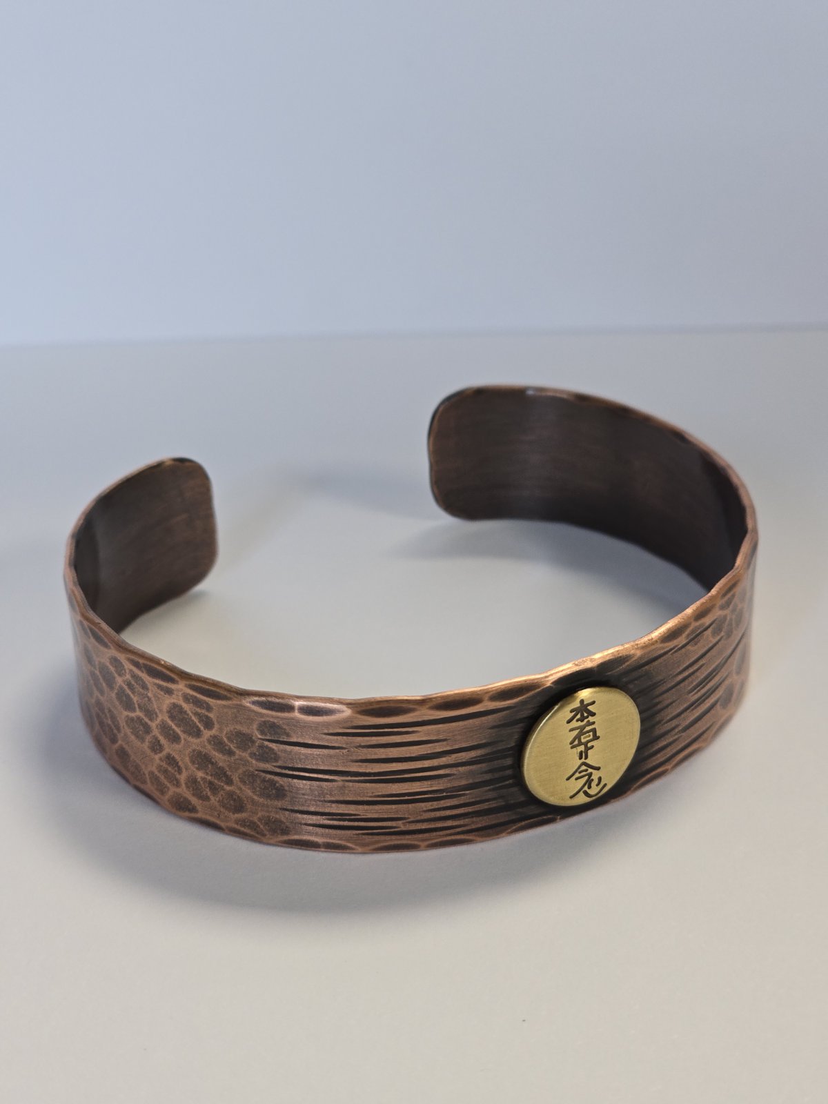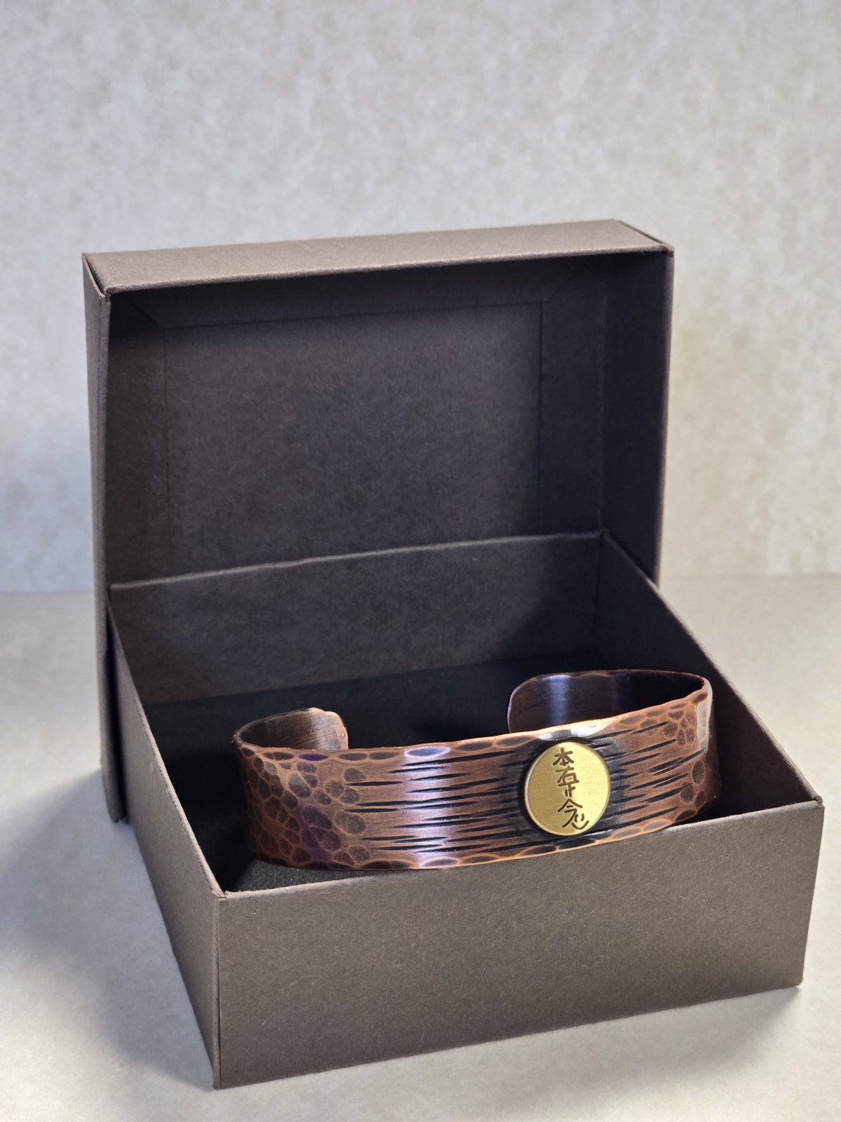Ta ročno izdelana bakrena zapestnica nosi simbol Hon Sha Ze Sho Nen, ki v reikiju pomeni časovno in prostorsko povezovanje ter zdravljenje na daljavo. Simbol deluje kot most med preteklostjo, sedanjostjo in prihodnostjo, odpira srce za odpuščanje in podpira osebno rast ter čustveno harmonijo.